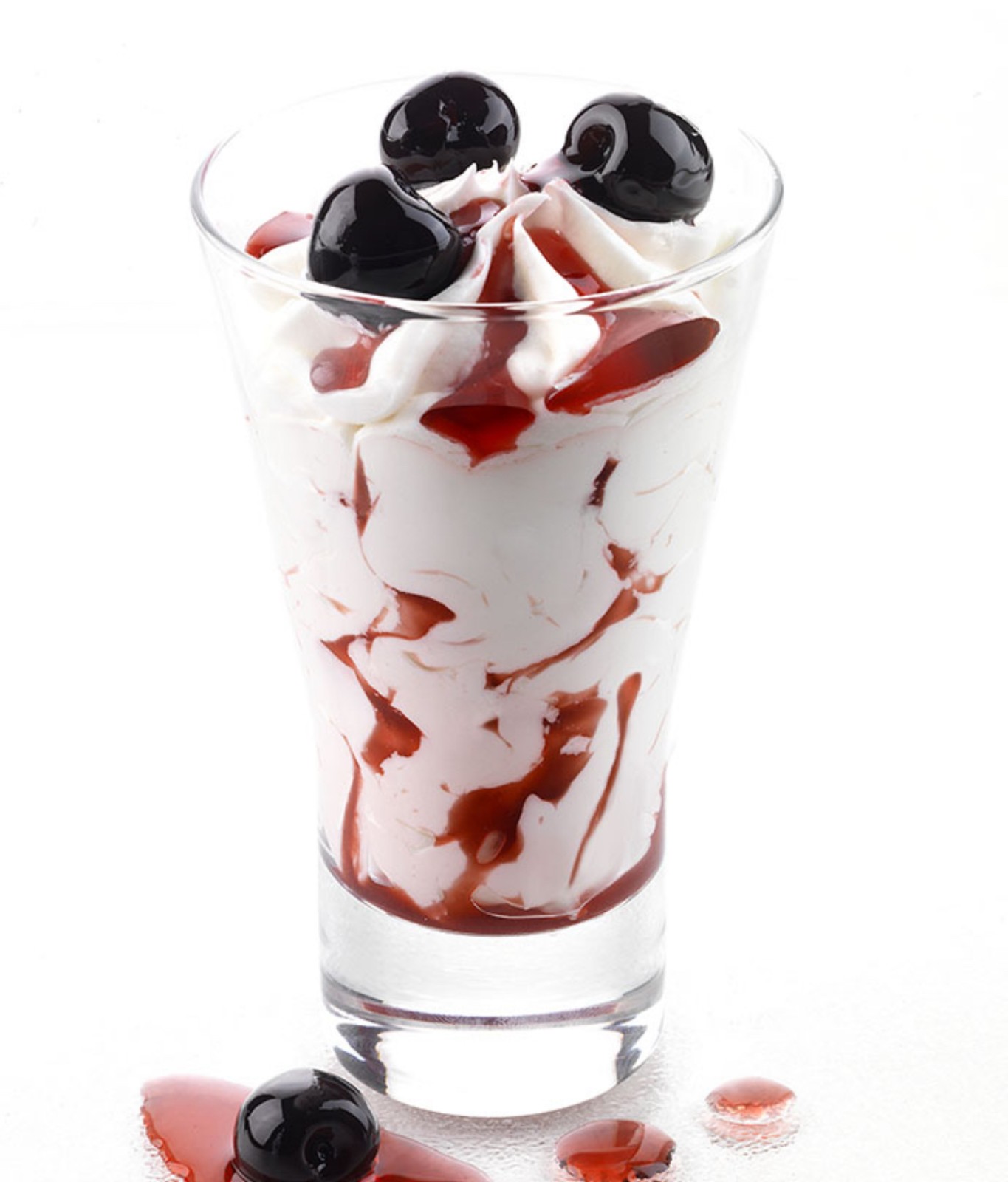 Coppa gelato alla panna variegato all'amarena e decorata con ciliegie amarenate